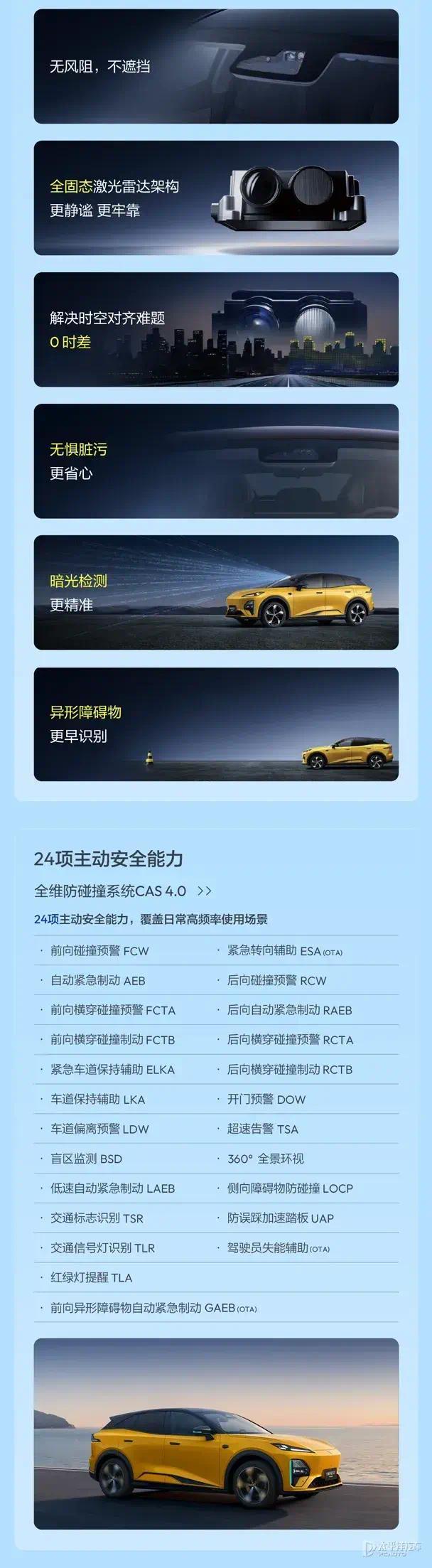 车辆搭载华为激光雷达及乾崑ADS 4.1智驾系统,具备城区、高速、园区(OTA)多场景领航辅助驾驶能力,搭配全维防碰撞系统CAS 4.0,在主动安全与智能驾驶方面实现配置下放。