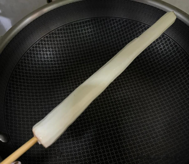 这时候,找一根平时吃饭用的筷子就行。把山药洗干净,一头用刀切掉一点露出断面,把筷子用力插进山药里,然后一手握着筷子当手柄,另一只手拿着削皮刀慢慢削。全程手完全不用接触山药,就能把皮削得干干净净,既安全又省事,吃山药再也不用提心吊胆了。