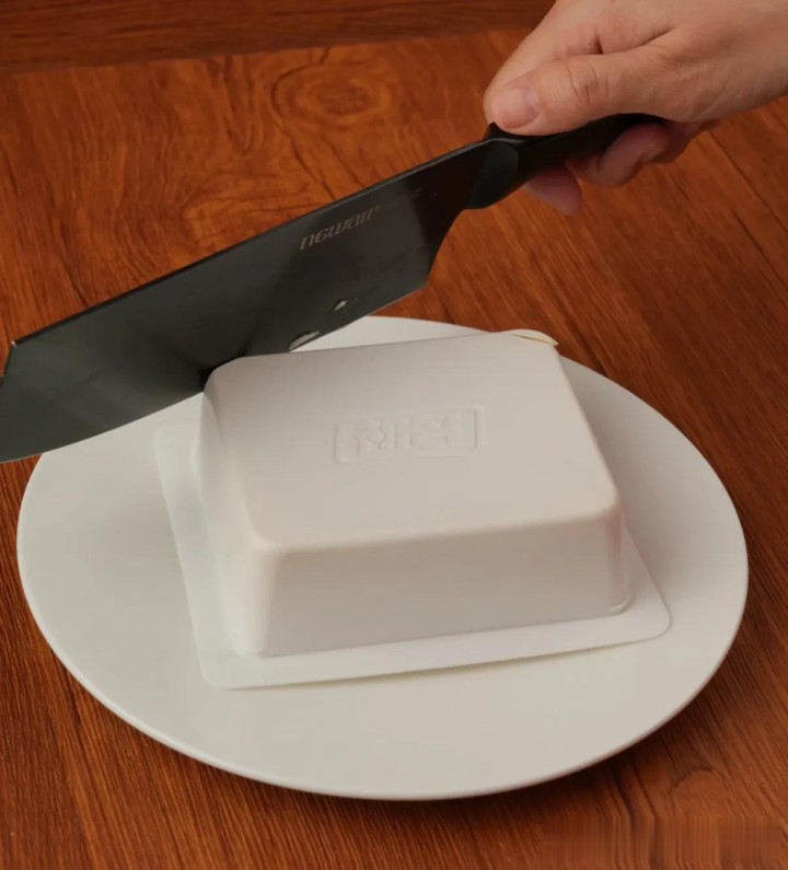 接着,你只需要把豆腐盒正过来,轻轻地用手拍拍盒子底部和四周,让豆腐与内壁彻底分离。再把盒子倒扣在盘子上,你就会惊喜地发现,一块完完整整、光滑细腻的豆腐就这么听话地“躺”在了盘子里。再也不用扣来扣去把豆腐弄碎了,这个技巧真的让人拍案叫绝。